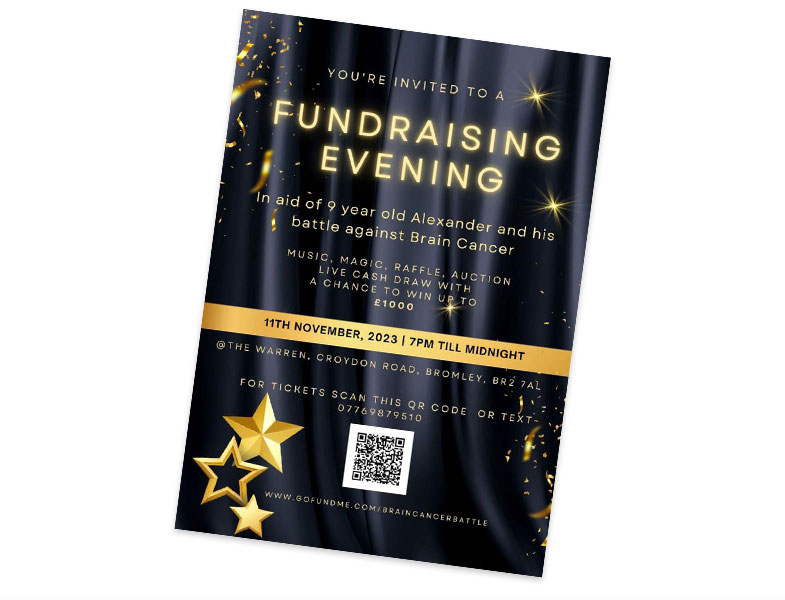 So join them, have fun and help Alexander beat brain cancer. Tickets are just £10 each. To buy a ticket or make a donation, visit gofundme.com/braincancerbattle