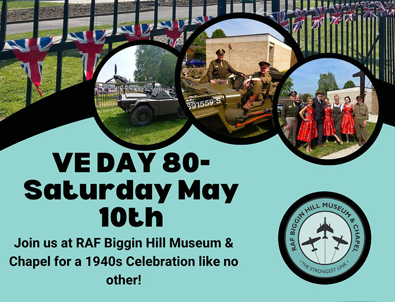 RAF Biggin Hill Museum & Chapel are celebrating the 80th anniversary of VE Day on 10th May from 10am to 5pm. There will be vintage vehicles, live music and food – so pop along and enjoy the celebrations!
